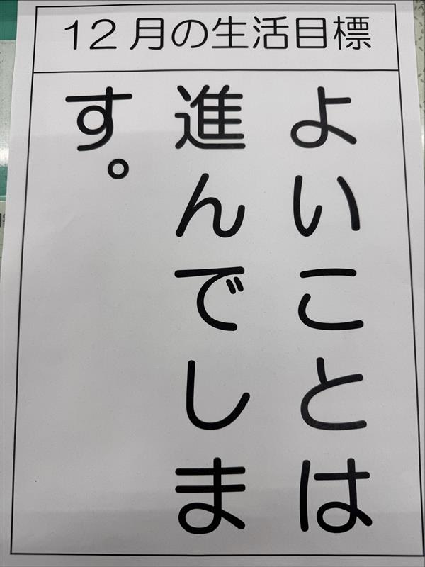 あるクラスでは日頃から進んでよいことを行う子どもが沢山います。(感謝)