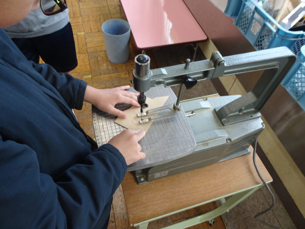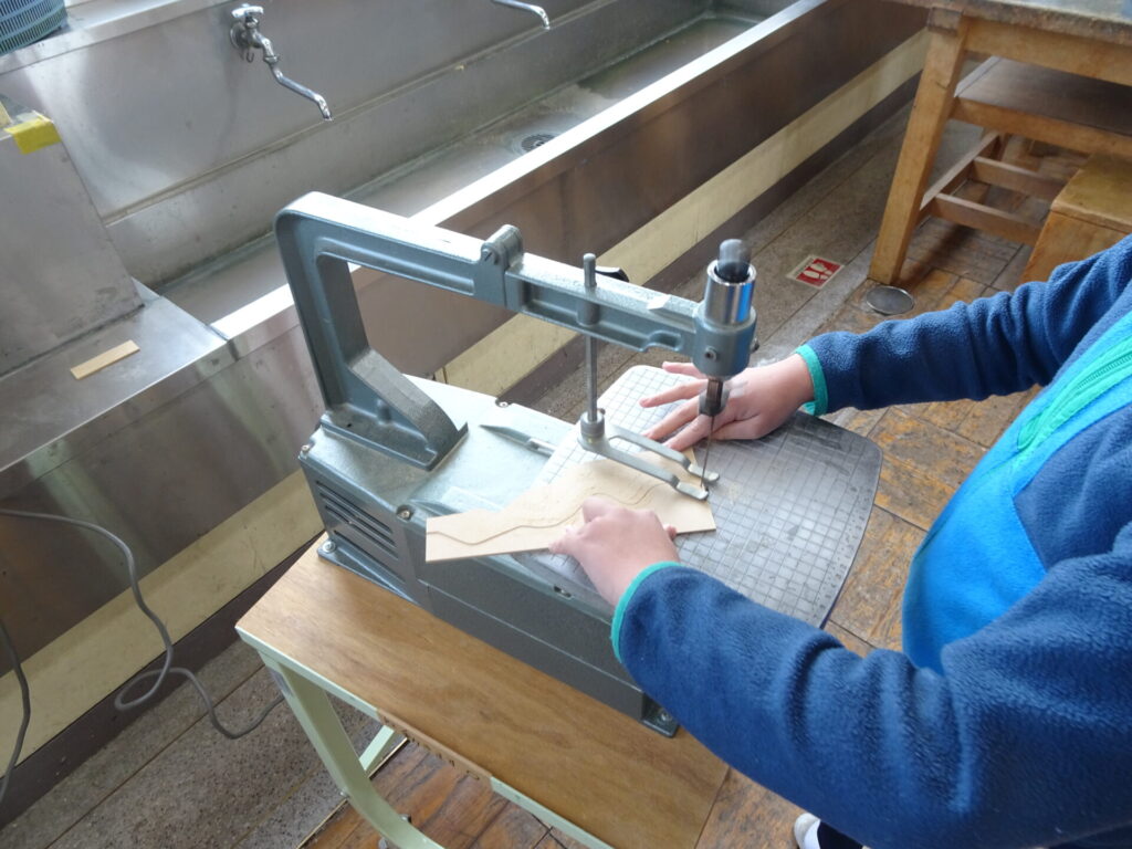 五年生では現在『電動糸のこ』を使って図工の作品制作を行っています。