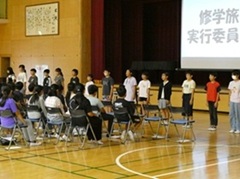 6年生の修学旅行実行委員からは、修学旅行のめあてや決まりについて話がありました。