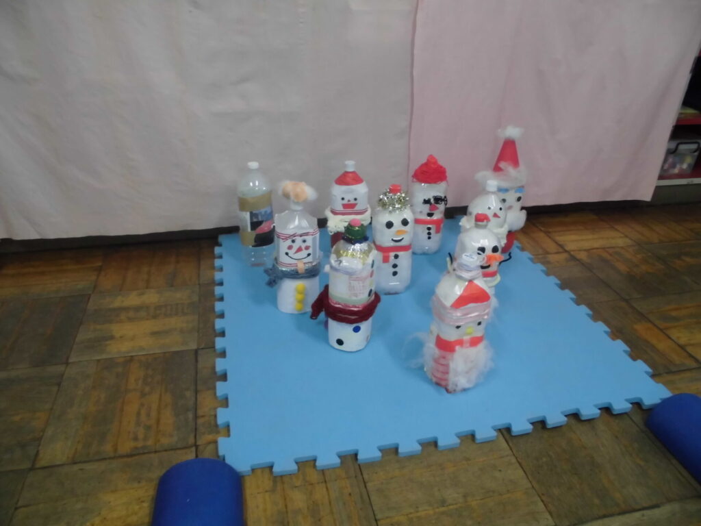 この日のために、12月初旬から踊りの練習や宝探しゲームで使用するお宝の作成やクリスマス風のボーリングピン作りを頑張ってきました。